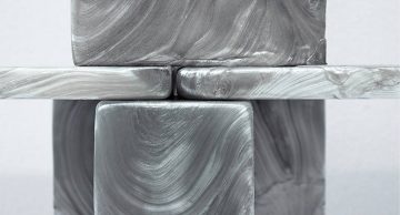 The Rotterdam designers Marten van Middelkoop and Joost Dingemans founded Plasticiet in 2018. Inspired by the beauty of natural stone, they process plastic into new materials and objects. Like the mother-of-pearl collection.